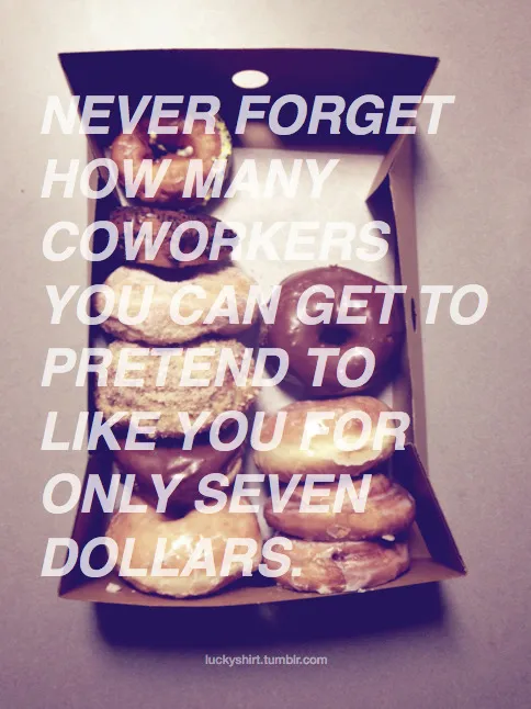 Пост 21382235553 “Never forget how many coworkers you can get to pretend to like you for only seven dollars.”